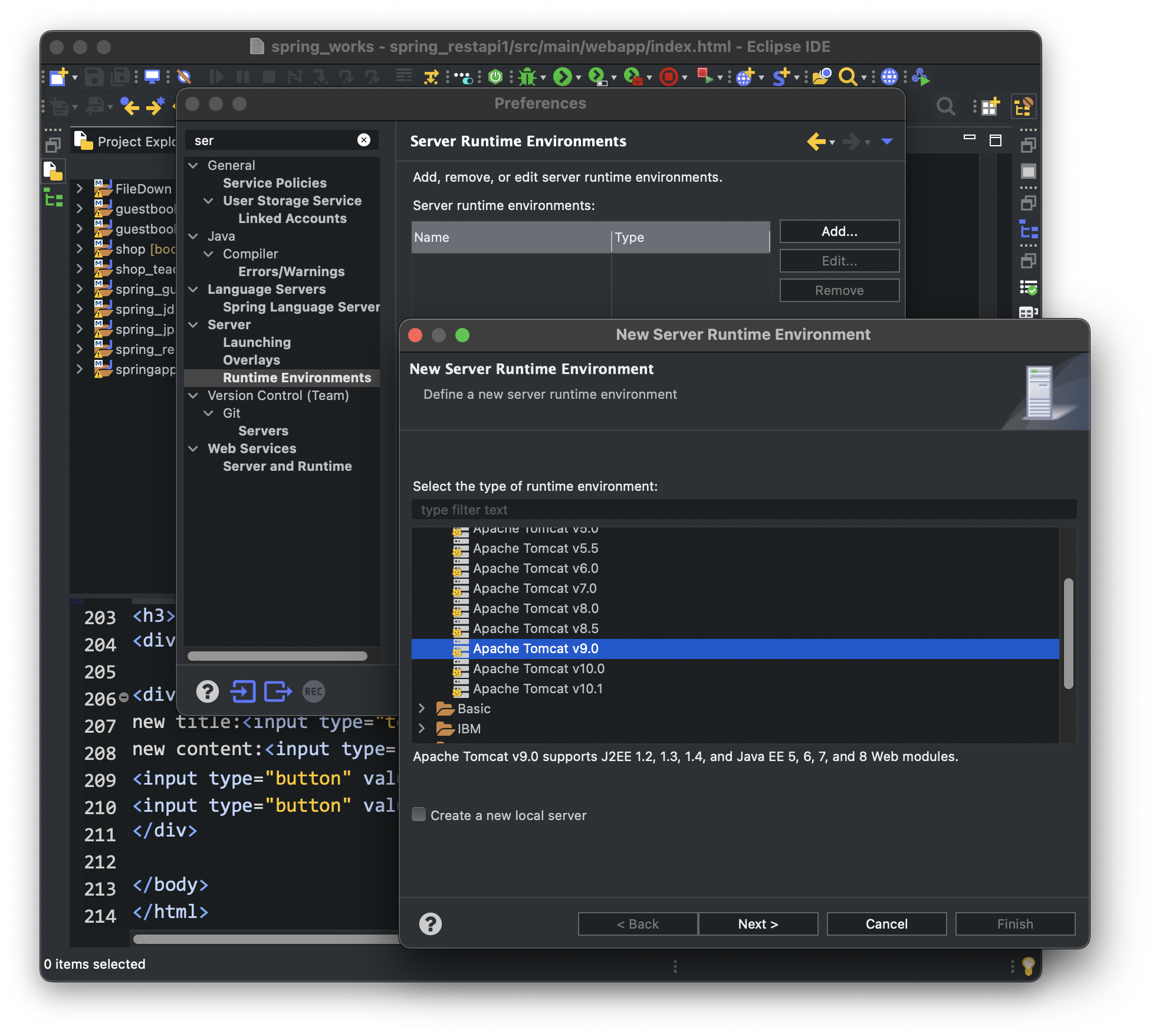 1. properties > Server > Runtime Environments > Add... > 톰캣9.0