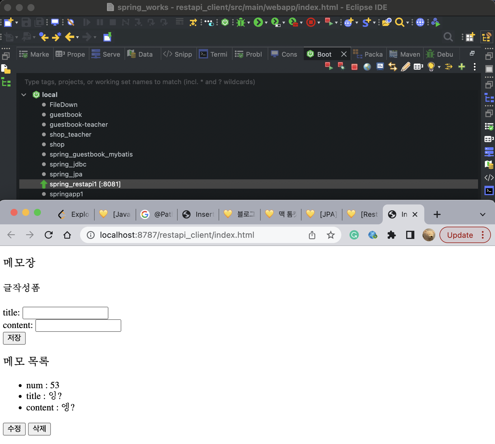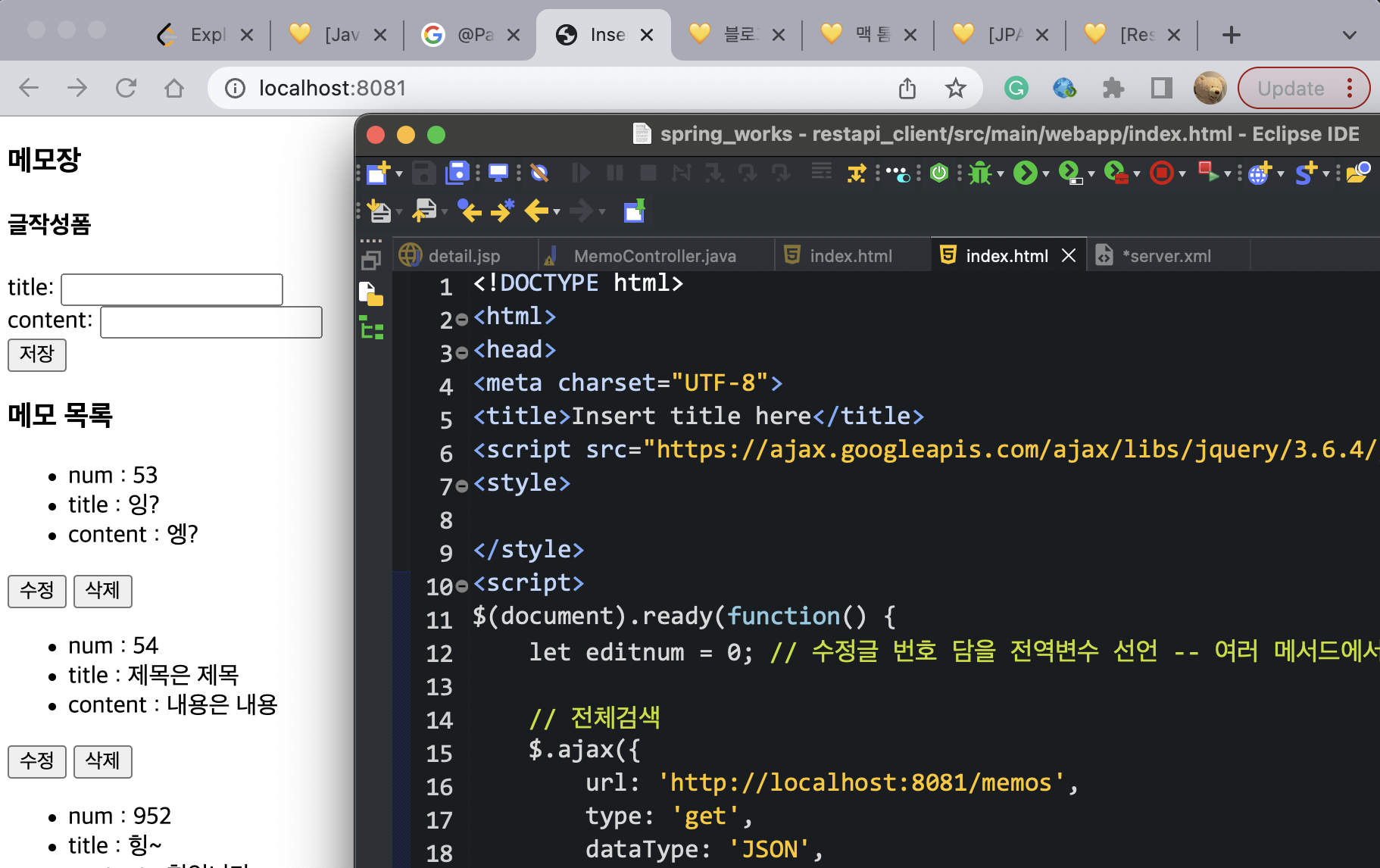 ---- 앞단 프로젝트에 있는 html 에서 백으로 가는 ajax url 을 8081로 맞춰주기~~~