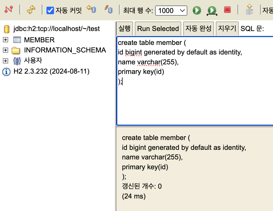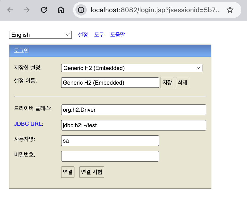 홈에 test.mv.db가 만들어져있어야 함.