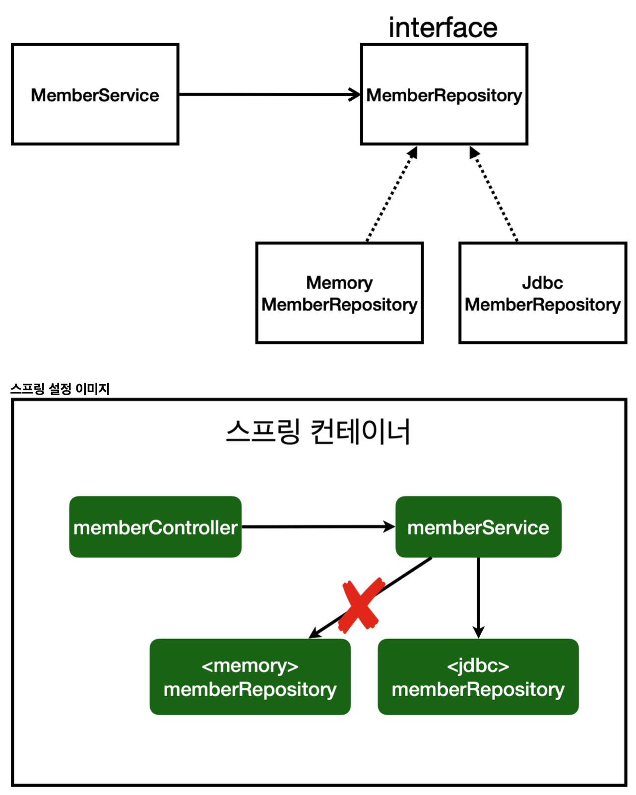 SpringConfig 에서 리턴하는 repository 만 수정해주면 DB 변경이 용이함.