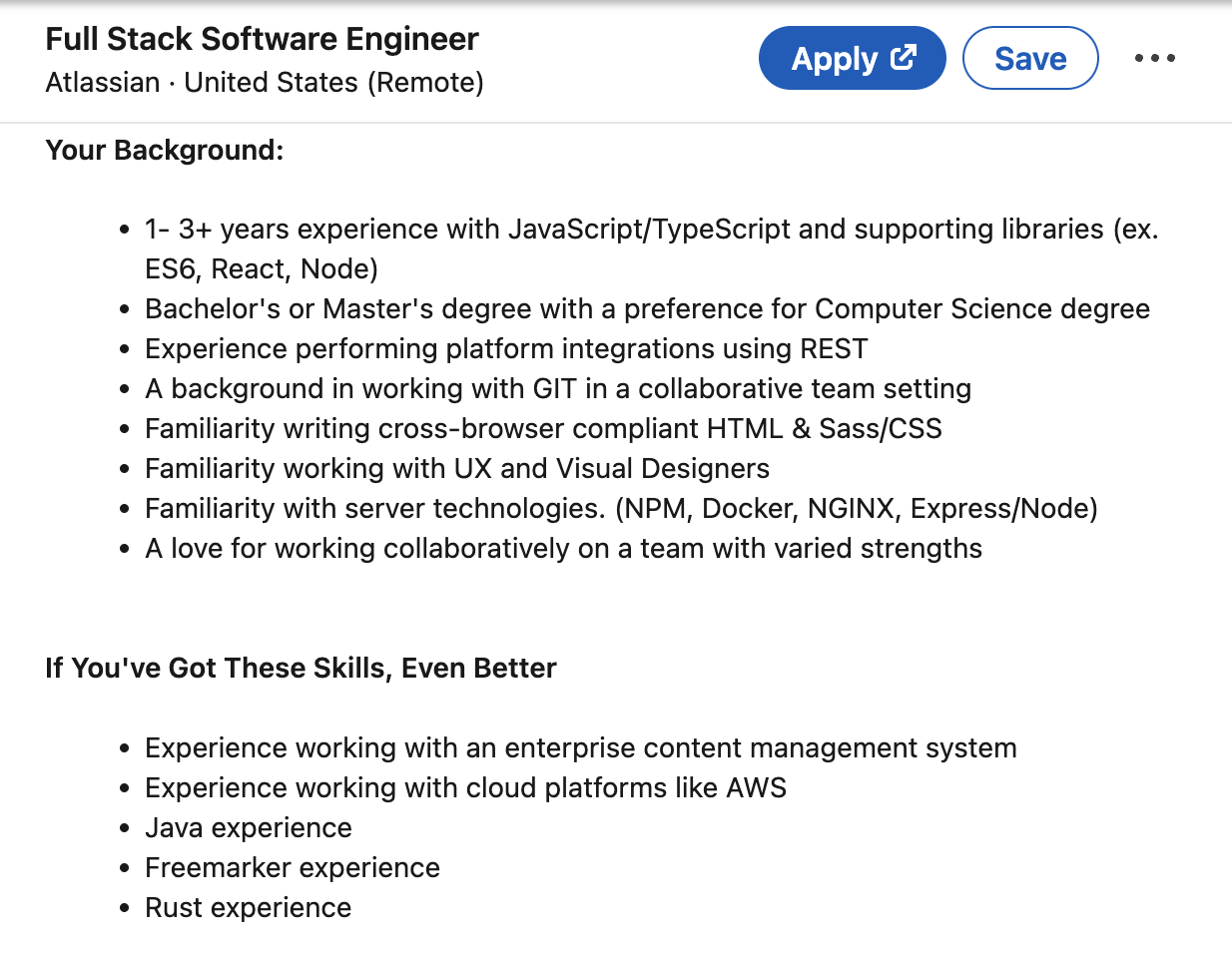 호주 기업에 대해 아는 건 Atlassian 정도라 그냥 호기심에 Atlassian에서 최근에 올린 풀스택 개발자 채용 공고를 봤는데