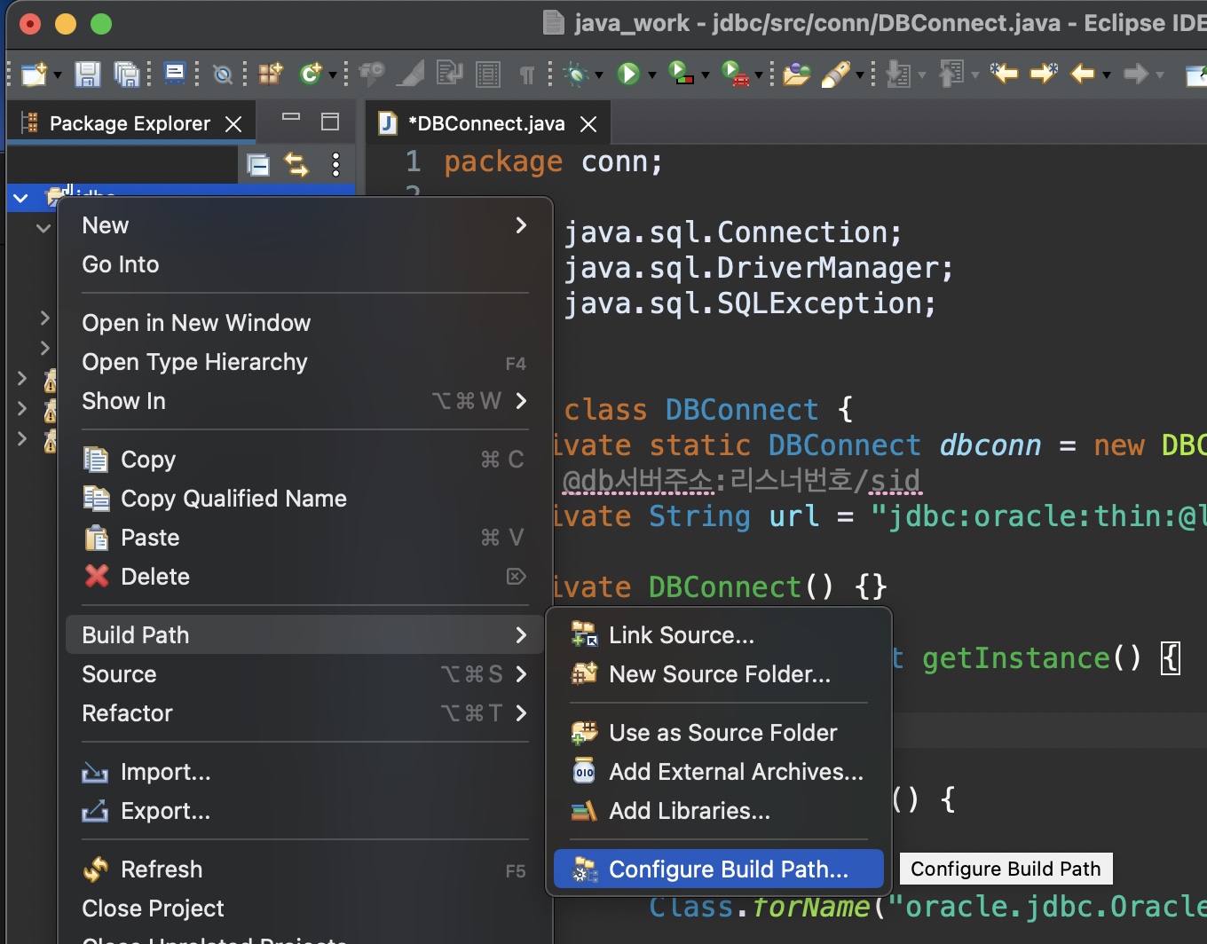 [Oracle] Mac OS에서 이클립스 MySQL JDBC 연동하기