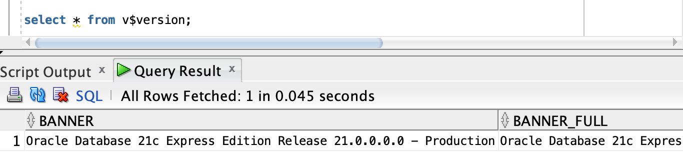 select * from v$version;