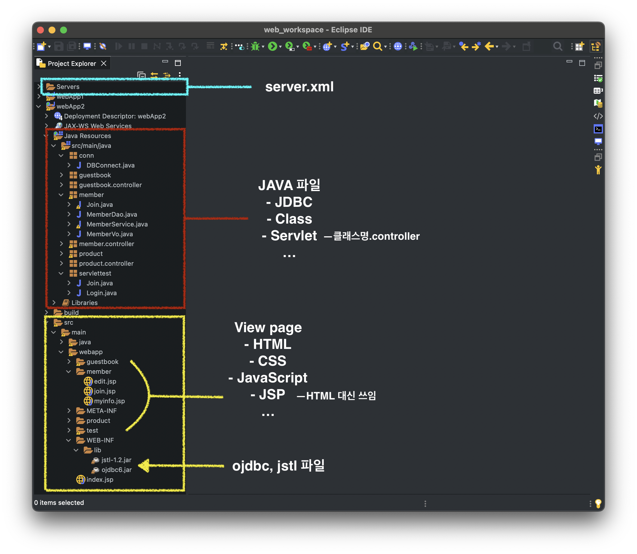 - /src/main/webapp/WED-INF/lib 에 jstl.jar 파일을 넣어야 가능. (ojdbc.jar 와 같은 폴더)