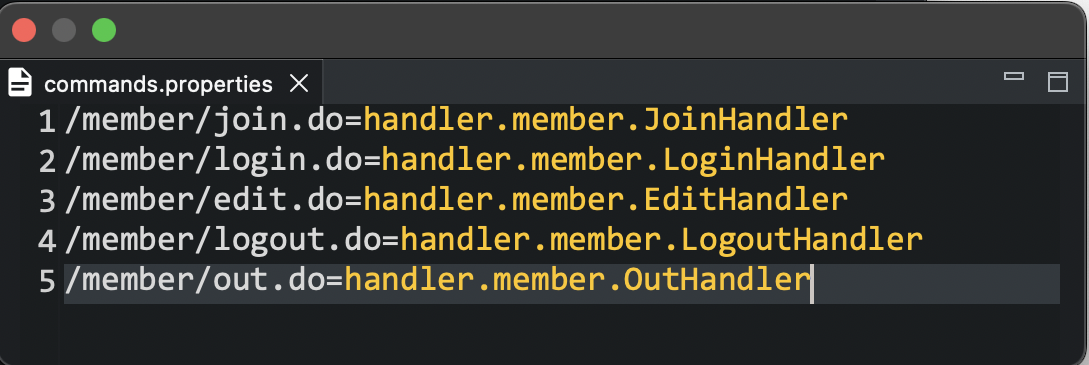 - url이 "/member/join.do" 이면 className은 "hendler.member.JoinHandler"